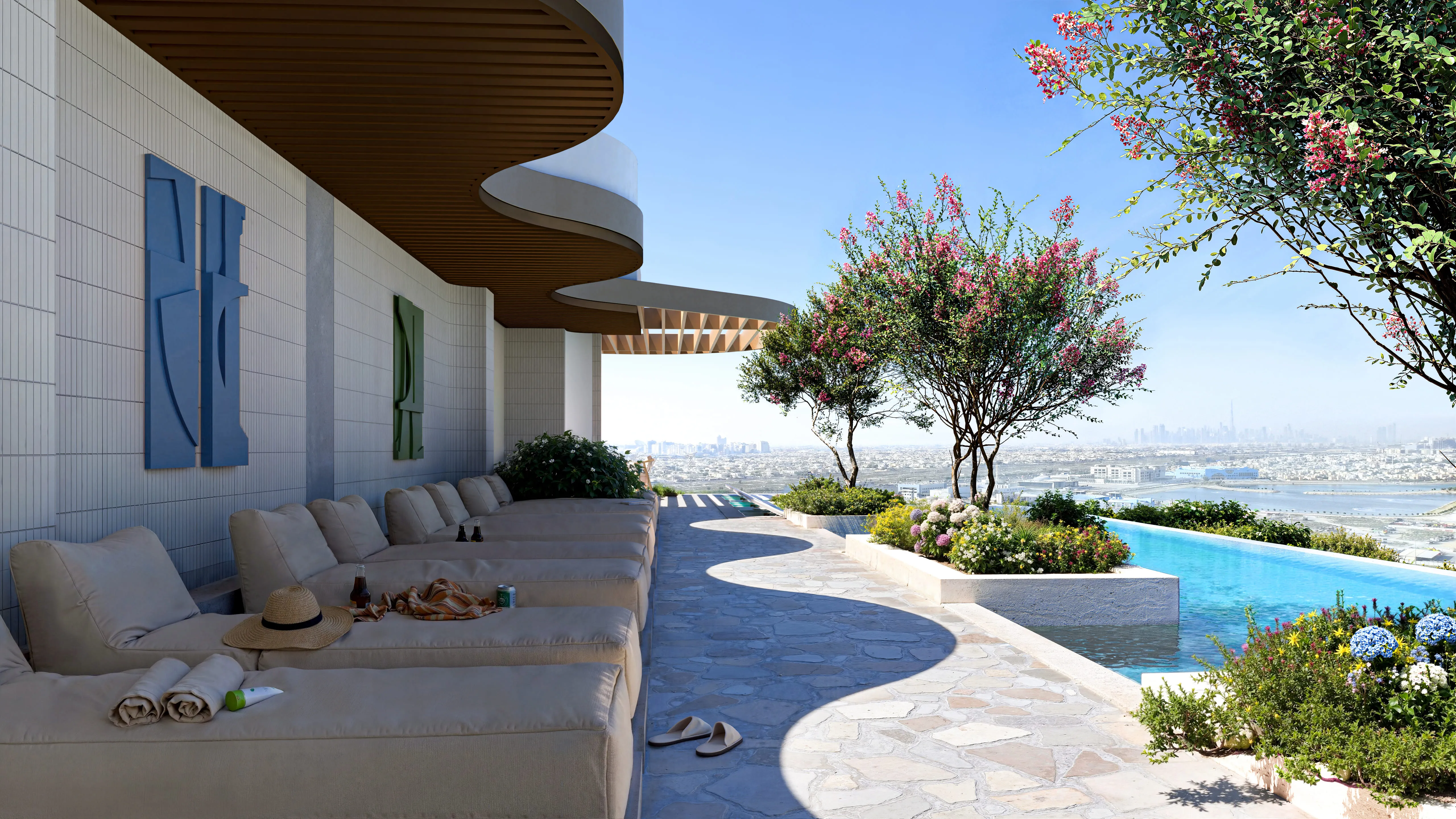 Defined by exceptional design, The Weave, an Al Ghurair development, is a charming address in the heart of Jumeirah Village Circle, Dubai. Its distinctive façade is inspired by the intricate weaving of palm fronds, highlighting the versatility and beauty of natural materials found in the Middle Eastern landscape. Across the façade, intertwining balconies give way to beautiful homes that exude warmth and peace. The rooftop residents club: Designed as an extension of home, the rooftop residents club offers exclusive amenities, naturally connecting wellness, fitness and social experiences, creating the perfect space to unwind. Wellness corner: Awaken your senses in the holistic corner with relaxing jacuzzis, a refreshing ice bath and a therapeutic sauna. Pool deck: Enjoy elevated views across the city while cooling off at the rooftop swimming pool surrounded by lush greenery, a true escape above the city. Barbecue: Entertain family and friends at the outdoor barbecue with a dedicated dining area. Fitness: Stay active and fit at the extensive gym and yoga studio – no membership needed. Cinema: Catch a big game or stream a movie at the residents-only, private screening room. Social lounge: Host, connect or get creative at the social lounge, a flexible space for dining, working or catching up with friends and family. Modern finishing with high-quality materials. Fitted kitchen and bathroom.