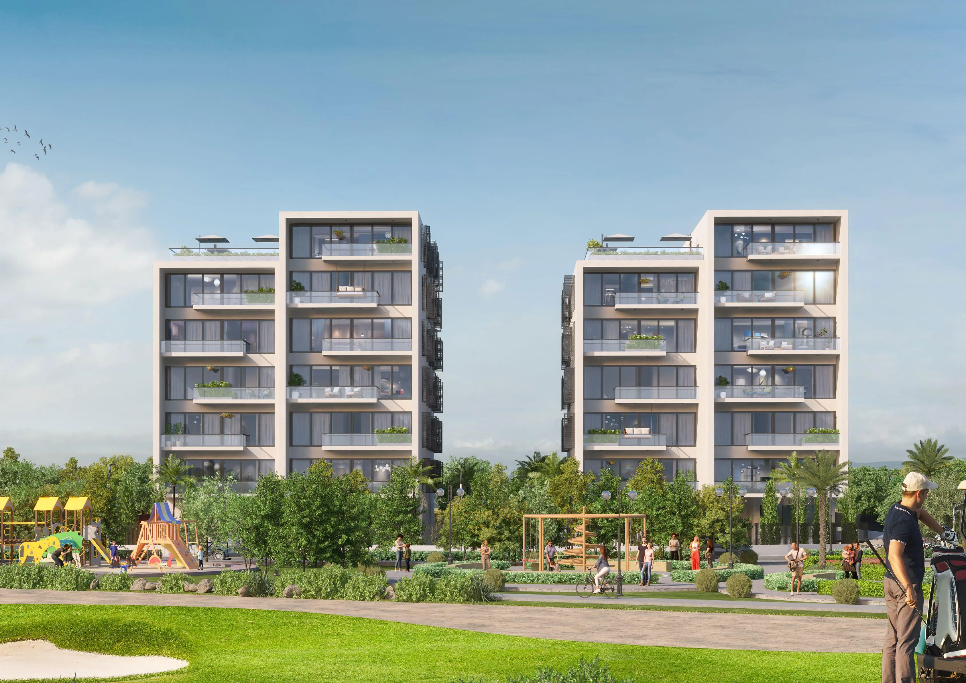 Eden Golf Views 1 presents a refined architectural expression shaped around clean forms, expansive openings, and a harmonious integration with golf fairways, mangrove forests, the marina, and the golden coastline. The development is conceived as a serene escape where modern architecture meets the richness of nature, creating a living environment defined by calmness, elevated aesthetics, and panoramic scenery at every turn. The residences are designed to capture the essence of openness, tranquility, and elegant coastal living. Spacious layouts, generous natural light, and thoughtful spatial compositions create homes that feel refined, uplifting, and connected to the surrounding landscape. Each residence is crafted to support a balanced lifestyle, ideal for families and individuals seeking a blend of comfort, scenic beauty, and proximity to world-class outdoor experiences. A comprehensive selection of amenities elevates daily life, blending wellness, leisure, and recreation. Residents enjoy access to facilities such as a gym, pool, kids’ play areas, yoga spaces, sauna, community parks, cycling paths, restaurants, beach areas, mangrove explorations, a golf course, marina access, beach club facilities, and a community center. These elements come together to create a vibrant yet serene lifestyle shaped around nature, relaxation, and active living. Interiors are curated with a focus on contemporary elegance, functional comfort, and quality craftsmanship. The design standards emphasize refined finishes, well-planned layouts, and a harmonious visual language that complements the project’s natural surroundings. The result is a sophisticated living environment crafted to enhance both aesthetic appeal and everyday comfort.