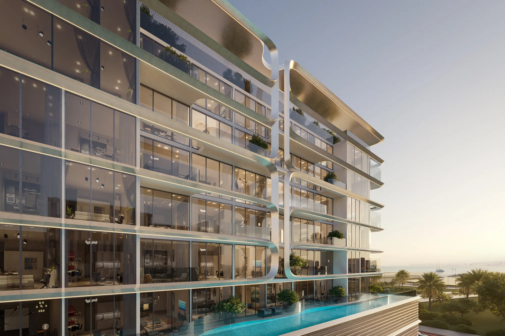 Vue Dorée embodies refined tranquility, where contemporary architecture flows seamlessly into soft sculptural forms and a warm, luminous atmosphere. The project radiates a sense of calm sophistication, offering a balanced blend of visual harmony, emotional comfort, and understated luxury designed to elevate everyday living. Its architectural and interior concept is built around clarity, craftsmanship, and thoughtful design. Curated textures, tailored lighting, and custom-crafted elements create a cohesive aesthetic identity. Collaborations with leading designers reinforce the project’s distinctive character and bring a signature style to every space. Amenities at Vue Dorée support a serene yet vibrant lifestyle, offering areas for relaxation, social interaction, and personal well-being. Elegant lounge spaces, landscaped retreats, and thoughtfully planned wellness zones shape a community focused on comfort, privacy, and effortless connection. Residences are finished with high-quality materials and precise attention to detail. Natural textures, refined surfaces, and a considered color palette set a tone of discreet elegance. Kitchens are fully equipped with modern appliances and designed for both beauty and practicality. Optional furnishing packages allow residents to customize their home and settle in with ease.