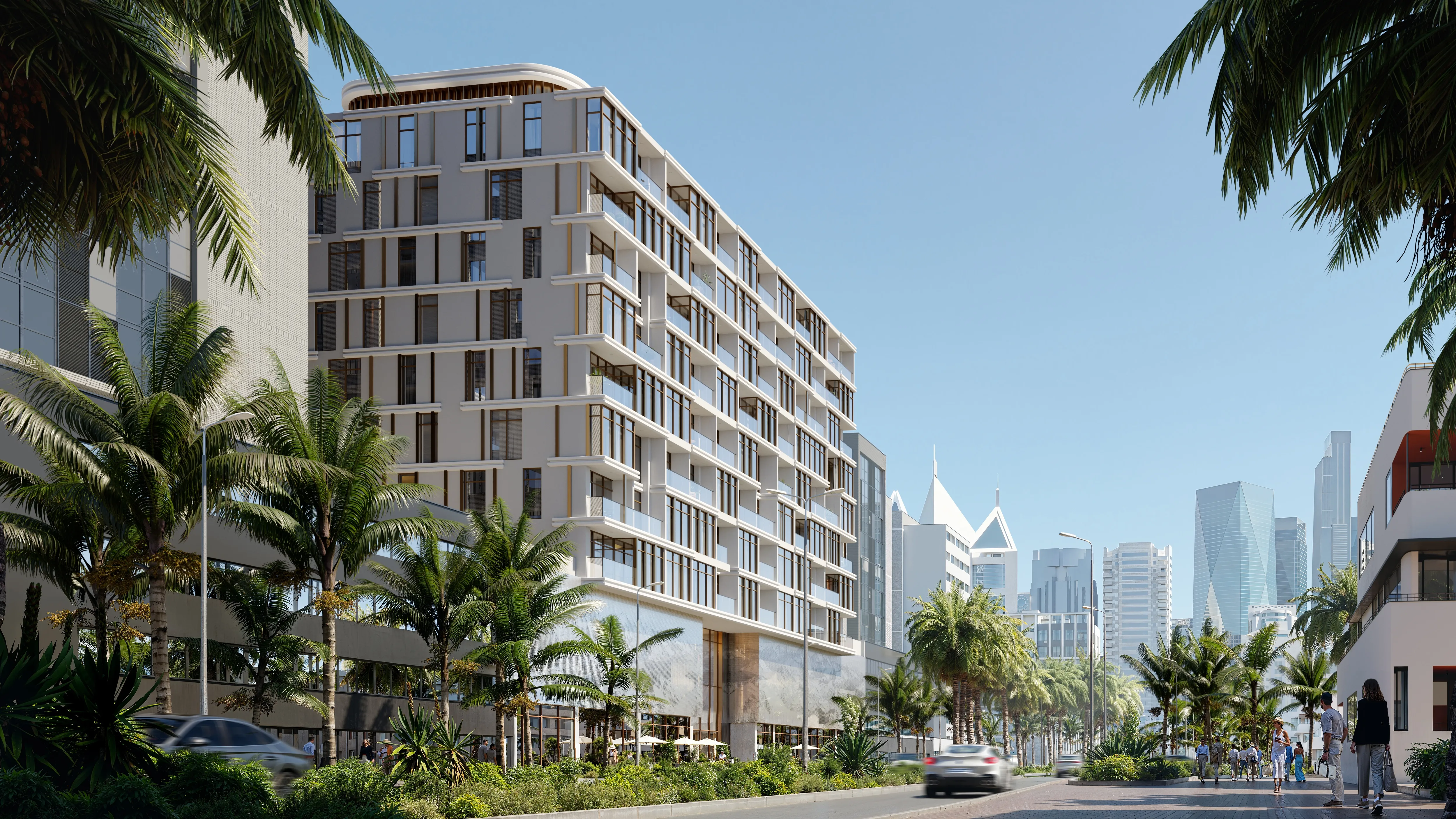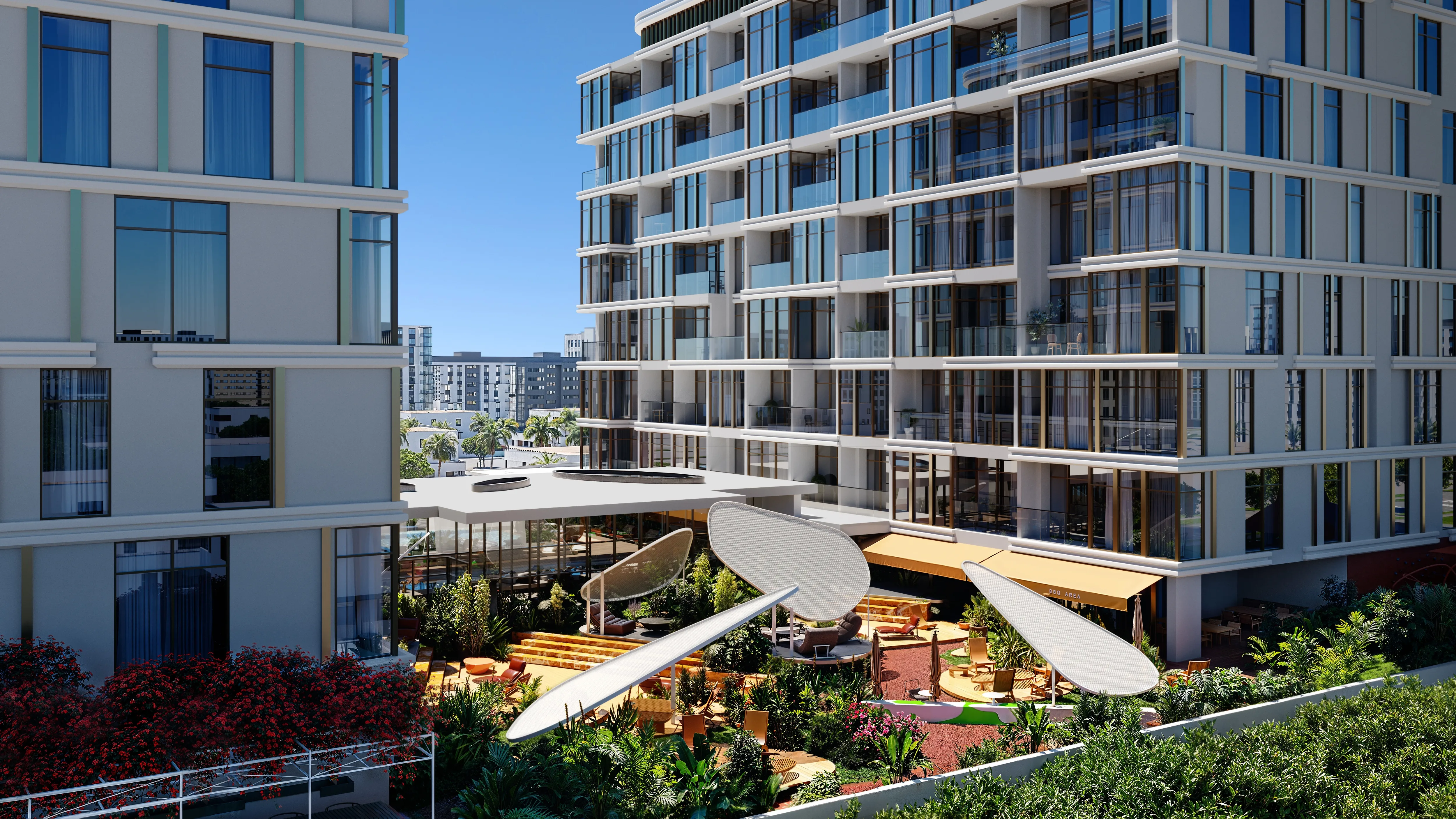 Arsenal Dubai is envisioned as a contemporary residential destination where design, lifestyle, and culture converge in the heart of the city. The development embraces a vibrant, urban aesthetic defined by expressive architecture, lush landscaped courtyards, and dynamic social spaces. Residents are surrounded by an atmosphere inspired by luxury summer vibes, artistic expression, and a refined metropolitan mood. With expansive terraces, integrated greenery, and leisure decks arranged between the buildings, Arsenal Dubai fosters a sense of openness and creativity woven into everyday living. Within the community, thoughtfully curated amenities encourage connection, productivity, and wellbeing. Signature spaces include a modern lobby, a lounge-style living room, coworking zones, a fully equipped gym, a yoga studio, and a terrace swimming pool with resort-inspired ambiance. A terrace garden and a healthy food restaurant further elevate the experience, offering both tranquility and social energy. Together, these elements create a lifestyle environment that balances comfort with bold design, appealing to those who value expressive and contemporary urban living. The interiors of Arsenal Dubai are characterized by a sophisticated blend of textures and materials, including polished concrete surfaces, striking marble elements, and warm layered lighting that enhances the architectural atmosphere. Custom-designed furnishings, sculptural decor pieces, and vibrant color accents contribute to a curated, design-forward environment. The project uses a mix of sleek built-ins, high-quality finishes, and expressive artistic elements.