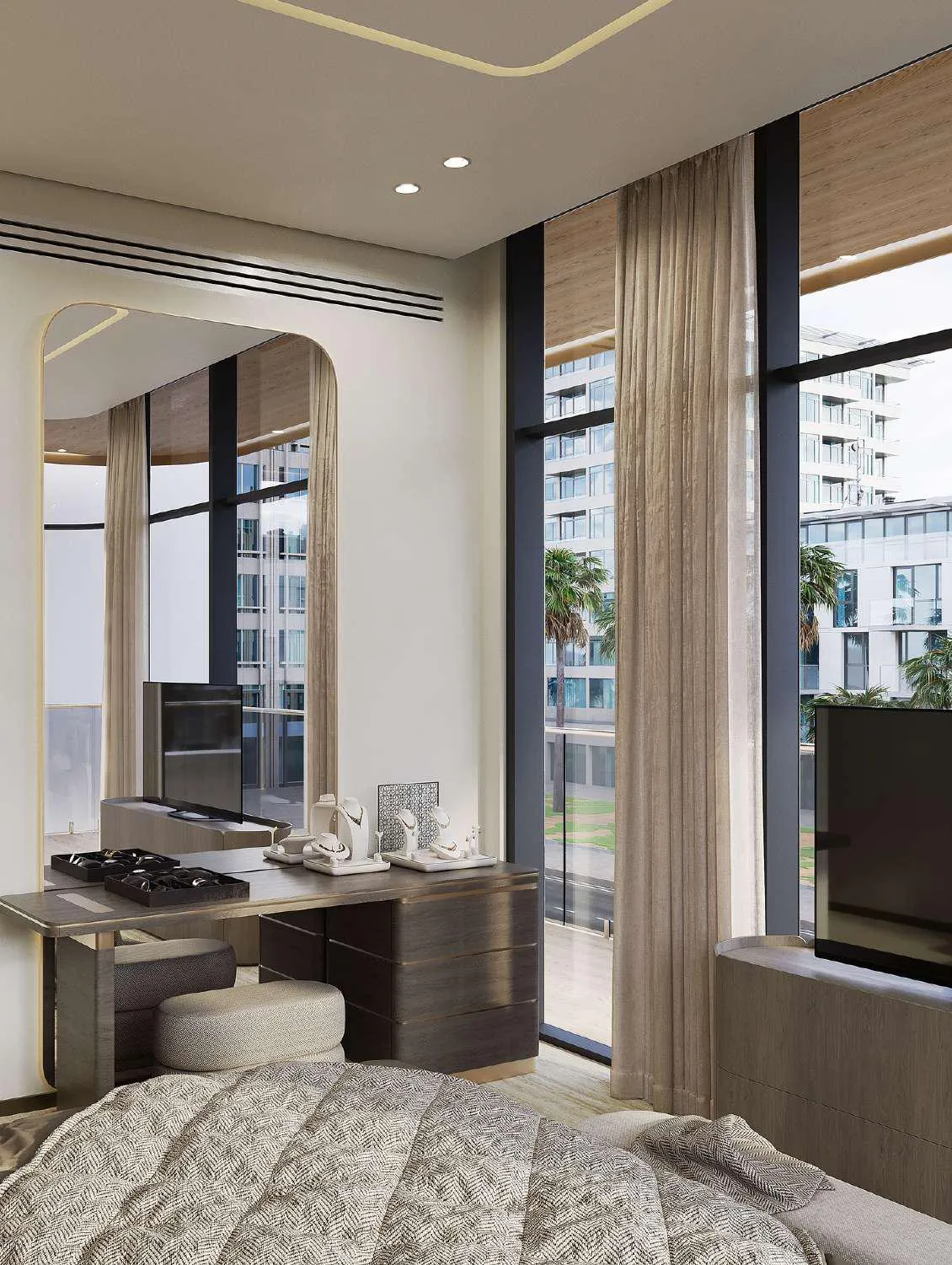 Regal Crest is an elegant residential development located in the heart of Dubai South, designed as a tranquil sanctuary within a fast-evolving urban district. Developed by Al Khalis Properties in collaboration with Time Homes Real Estate, the project embodies a philosophy of refined modern living shaped by balance, comfort, and understated sophistication. Its architectural character is defined by calm lines, harmonious proportions, and a seamless connection to landscaped green surroundings, creating an environment that feels both private and contemporary. The lifestyle at Regal Crest is enriched by a curated selection of wellness-oriented amenities designed to support relaxation, activity, and community living. Residents can unwind in Zen gardens with cascading water features, enjoy the infinity swimming pool, or restore balance in dedicated yoga and meditation areas. The development also features a state-of-the-art gym, barbecue spaces, children’s play areas, and garden-facing communal zones, offering a well-rounded environment for everyday living. The residential offering includes studios and one-, two-, and three-bedroom apartments designed with spacious layouts and refined detailing. Interiors are finished in a modern style using porcelain floor tiles with a marble look, matching porcelain skirting, plastered walls with emulsion paint, accent walls with wallpaper or equivalent finishes, and gypsum ceilings. Wardrobes and kitchen cabinetry are crafted from MDF joinery with laminate finishes, while kitchens feature engineered stone or quartz countertops and come equipped with German-quality appliances, including oven, cooker or hob, hood, fridge, and washing machine from Siemens, Bosch, or equivalent brands. Bathrooms are fitted with premium sanitaryware from Kohler, Duravit, or equivalent, completing homes defined by quality, durability, and timeless elegance.