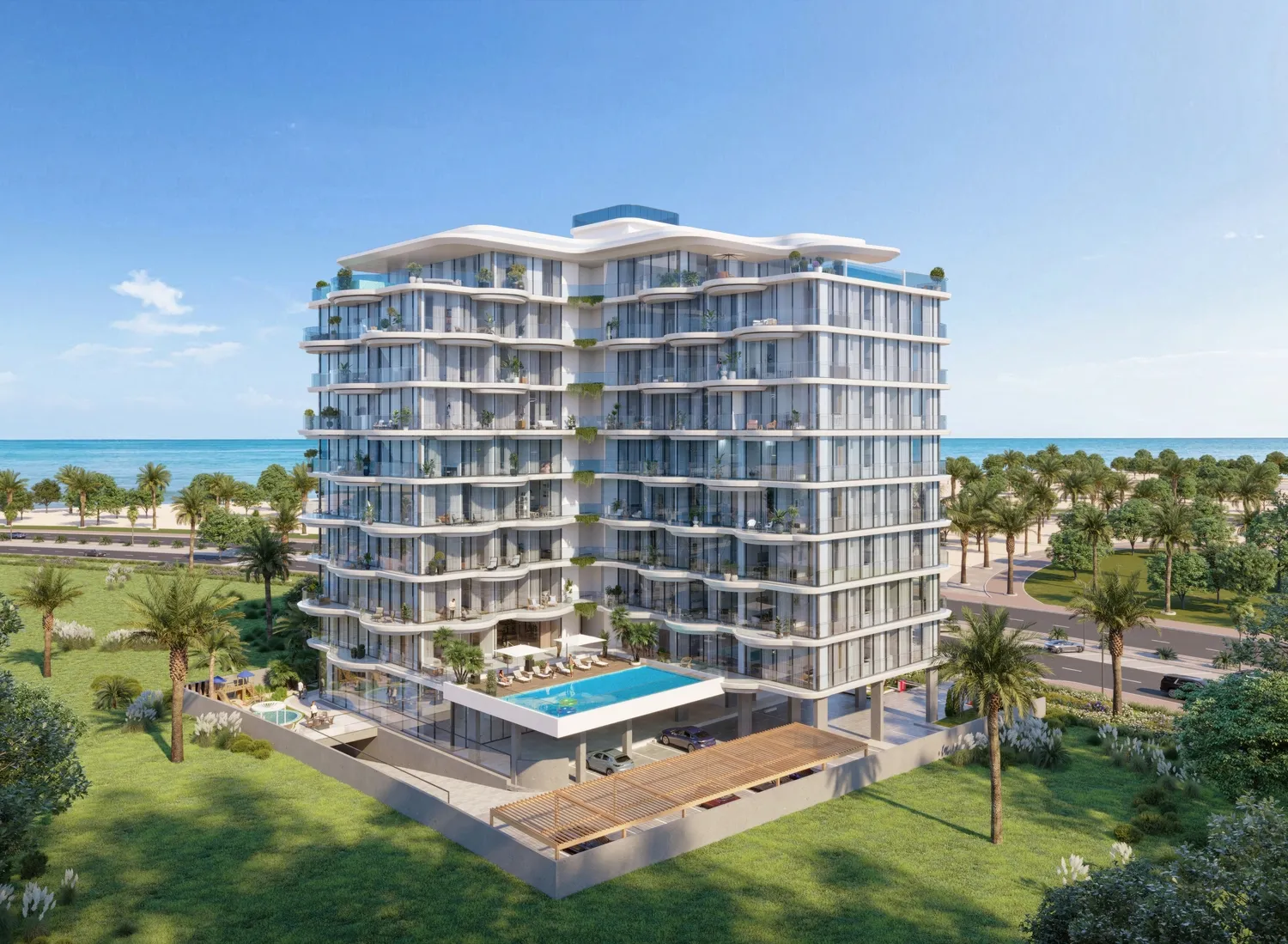 Aqua Maya is a boutique coastal residential development by BNW Developments, located on Al Marjan Island. Designed as a serene island address, the project blends contemporary architecture with a calm, nature-led lifestyle, drawing inspiration from the rhythm of the sea and the balance of natural elements. The building’s sculptural, balcony-led façade mirrors soft ocean waves, while the landscaped podium and open layouts create a seamless connection between indoor spaces and the surrounding environment. The project is conceived for residents who value privacy, comfort, and a slower pace of living. Residences are arranged to maximise natural light, cross-ventilation, and views, fostering a sense of openness while maintaining intimacy. Shared spaces are thoughtfully curated to support everyday routines, from relaxation and wellness to family-friendly leisure, forming a cohesive, community-oriented living experience by the sea. Interiors at Aqua Maya are finished with high-end materials and a refined, neutral palette that emphasises clarity and elegance. Residences feature premium finishes, acoustically soundproofed walls, humidity-controlled cooling systems, and individual thermostats for enhanced comfort. Kitchens are integrated seamlessly into the living spaces with a functional, contemporary design, while the overall specification focuses on durability, functionality, and understated luxury.
