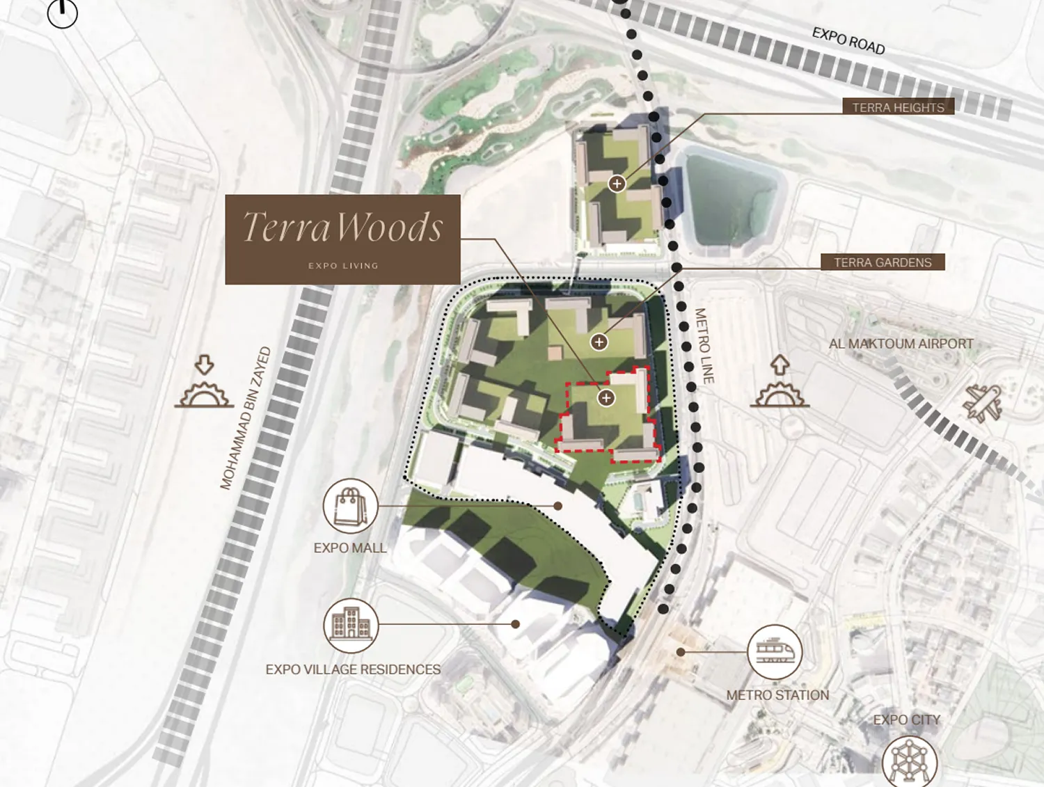 Terra Woods is a contemporary residential community located within the vibrant Expo Living district, just moments from Expo City Dubai. Developed by Emaar Properties, Terra Woods offers a lifestyle that blends urban connectivity with nature-inspired living. This project represents a forward-thinking residential destination that combines modern living, strong investment potential, and a balanced lifestyle within one of Dubai’s fastest-growing and most visionary districts. Terra Woods is designed to promote wellbeing and community living, offering a wide range of lifestyle amenities including adult and children’s swimming pools, yoga lawn, outdoor gym, jogging tracks, sports courts, meditation gardens, BBQ areas, and recreational spaces. The development is surrounded by lush parks and tranquil landscapes, creating a peaceful environment while maintaining direct access to urban conveniences. The project features a collection of thoughtfully designed 1, 2 and 3 bedroom apartments and exclusive townhouses, totaling 824 residential units. Each home is designed with modern architecture, open layouts, and large windows that maximize natural light while offering serene views of landscaped greenery and the dynamic city skyline.