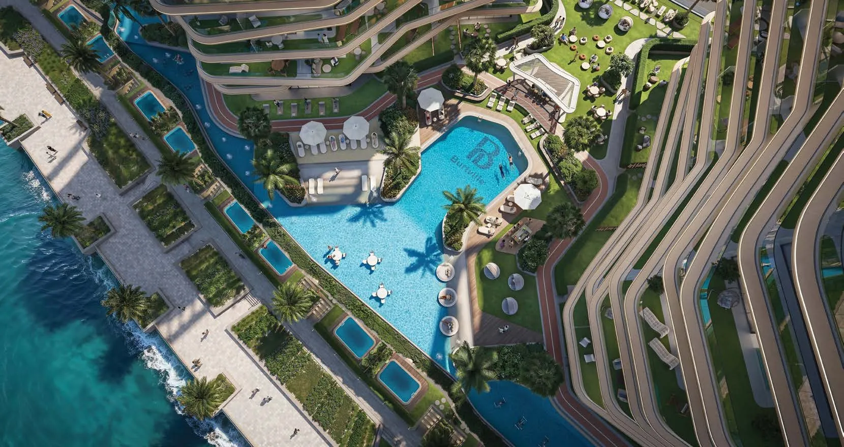 Bab Al Qasr Seaview Residence 51 is an exclusive 5-star branded residential development located in the prestigious Al Raha Beach area of Abu Dhabi, offering a refined waterfront lifestyle defined by elegance, privacy, and uninterrupted sea views. The project comprises 163 luxury residences, including a diverse mix of spacious simplex and duplex apartments, sky villas, and 5-bedroom waterfront townhouses, all thoughtfully designed to maximize space, natural light, and panoramic coastal vistas. With 100% sea-facing units and expansive terraces, the development creates a seamless connection between indoor comfort and outdoor living. The project is enriched with an exceptional range of resort-style amenities designed to elevate everyday living. Residents can enjoy multiple swimming pools including beach-entry, family, and infinity pools, as well as landscaped gardens, outdoor lounges, and waterfront seating areas. Additional lifestyle features include a fully equipped gym, residents’ lounge, jogging track, sports courts, kids’ play areas, BBQ zones, outdoor cinema, and a variety of social and relaxation spaces, complemented by rooftop experiences such as sky lounges, yoga lawns, and dining areas with breathtaking views. Each residence is fully furnished with premium global brands, reflecting a sophisticated and contemporary design standard. Interiors feature high-quality materials such as travertine marble flooring and elegant finishes, alongside fully equipped kitchens fitted with Miele appliances and designer sanitary ware by Armani/Casa. Smart home systems, stylish furniture, and integrated technology ensure both comfort and convenience, while select units offer private elevators, pools, and gardens, delivering a truly elevated and luxurious waterfront living experience.