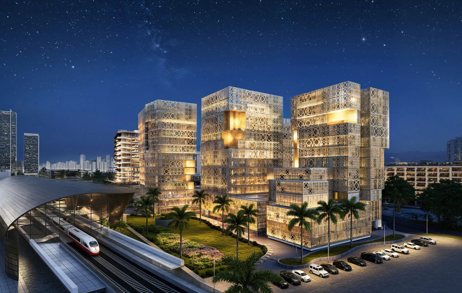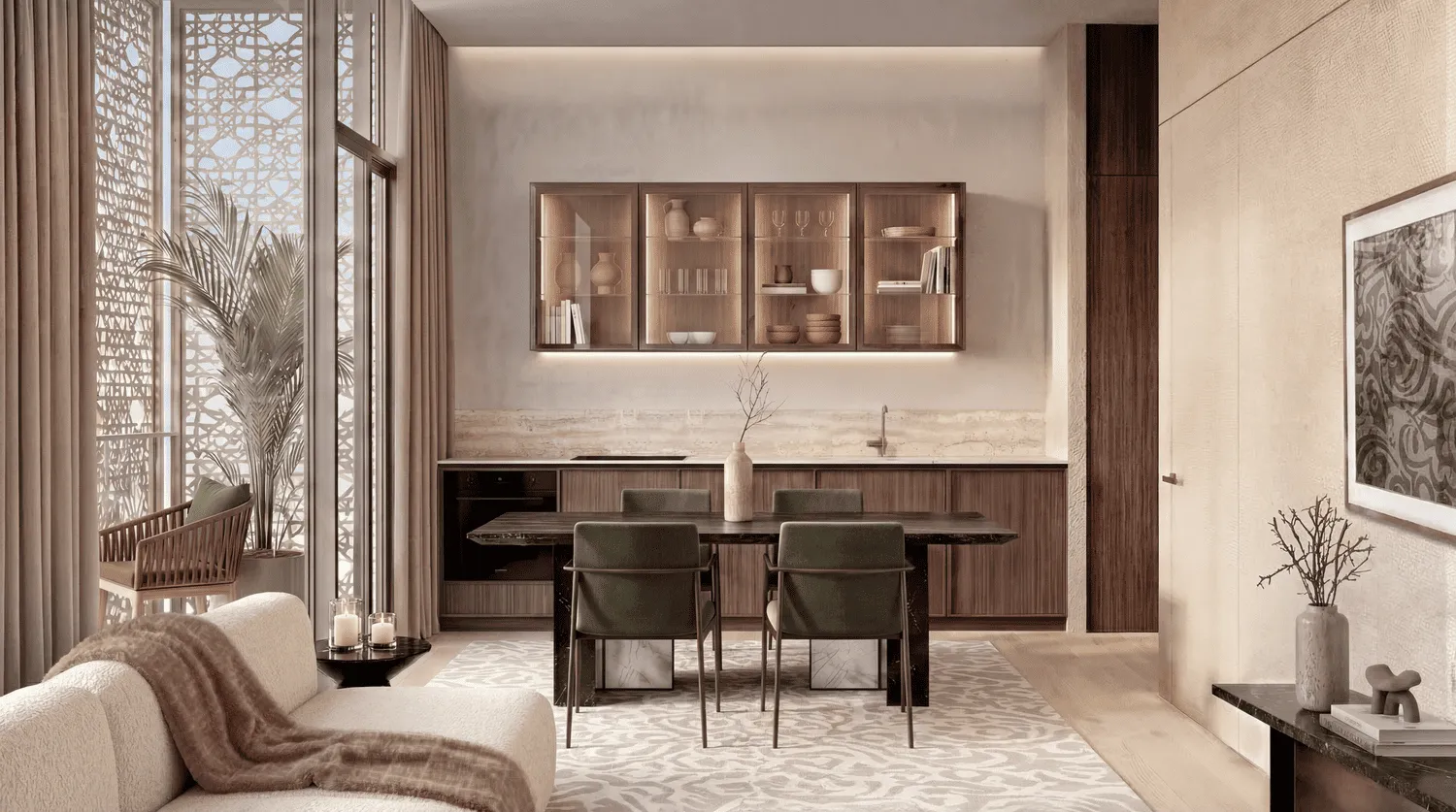 Richmond District is a landmark development in Al Furjan, introducing the area’s first fully integrated residential and commercial community. The project consists of five elegant residential buildings and one office tower, all seamlessly connected by a vibrant shared podium. Designed in collaboration with John Richmond, the development reflects a bold fusion of contemporary luxury and distinctive artistic expression, creating a unique environment where lifestyle, design, and convenience exist in perfect harmony. The podium level serves as the social and recreational heart of the community, offering an exceptional range of amenities tailored for modern living. Residents can enjoy resort-style pools with water features, a lagoon and waterfall, outdoor fitness areas, a fully equipped gym, yoga zones, and a padel court. A curated selection of cafés, restaurants, and retail outlets enhances everyday convenience, while the project’s immediate proximity to the metro ensures unmatched connectivity across Dubai. Each residence is fully furnished by John Richmond, showcasing refined interiors with a strong design identity and premium finishes. The homes are complemented by 5-star hotel-level services, including valet parking, concierge assistance, room service, and professional cleaning. Richmond District delivers a complete lifestyle experience, combining sophisticated living spaces with world-class amenities and services in one dynamic destination.