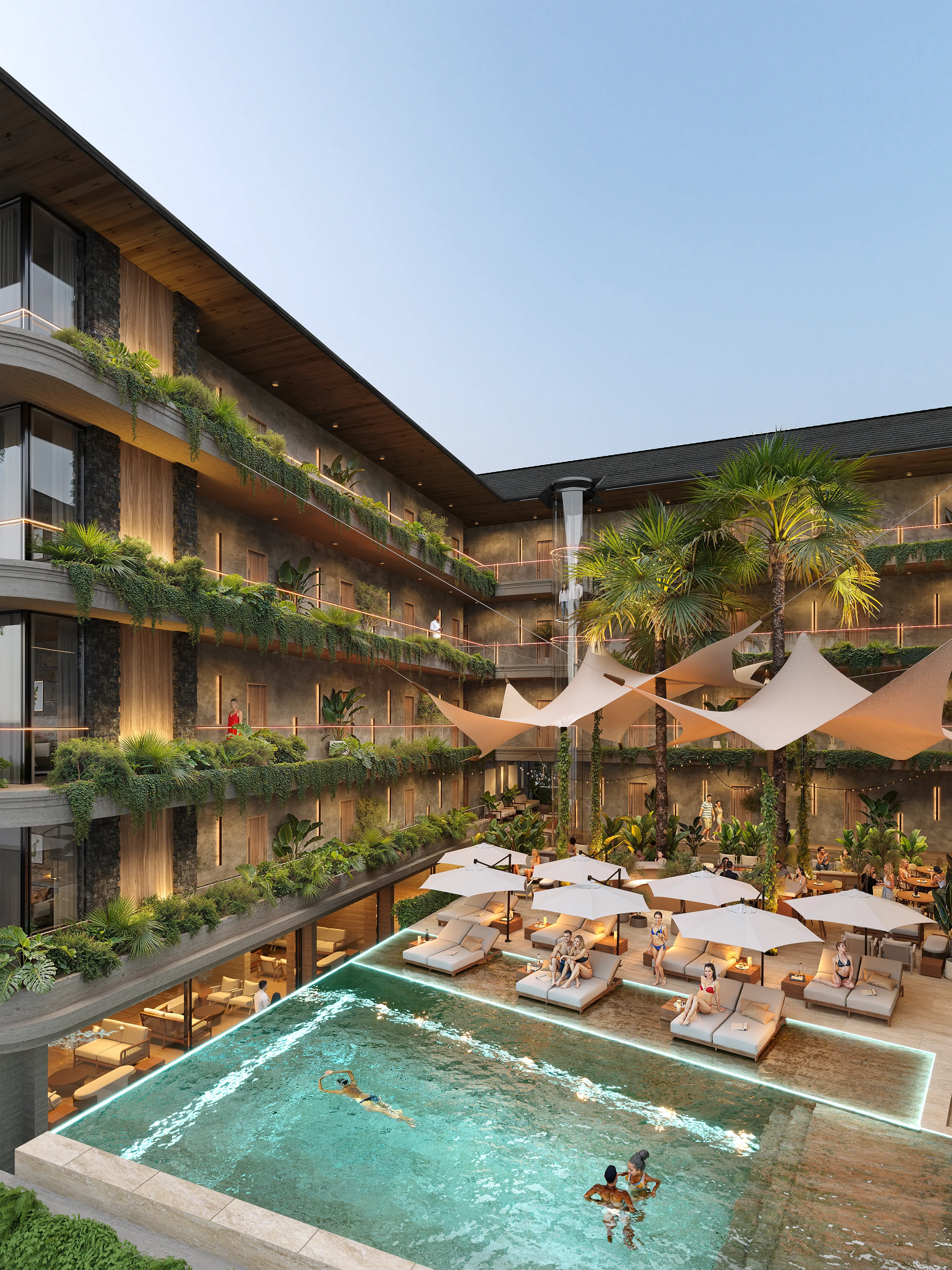 Royal Oasis Black Edition is a premium residential project by NEXA, an award-winning developer with over five years of experience in Bali and a portfolio of twelve complexes on the island. This striking development fills a unique niche in the market, offering full-size apartments with five-star hotel services in an area currently lacking mid-premium projects. With an exceptionally long leasehold term, this investment is designed to preserve and grow wealth across generations. Residents and guests enjoy a complete ecosystem of world-class facilities. The complex features a welcoming reception and concierge service, a rooftop with a bar, a restaurant, a café, a fully equipped gym, a spa, and a stunning swimming pool. A dedicated children's area and a complimentary shuttle service to beaches and attractions ensure convenience for all guests. Round-the-clock hotel infrastructure and professional management guarantee a seamless, hassle-free experience. Every apartment at Royal Oasis Black Edition is delivered fully furnished with meticulous attention to quality and comfort. Interiors feature soaring ceilings, double-glazed windows, premium granite kitchen countertops, and Italian veneer finishes. Kitchens are fully equipped, while bathrooms feature TOTO sanitary ware. Bedrooms are appointed with King Koil mattresses for five-star comfort, and BLUM hardware with soft-close mechanisms adds a touch of precision in every movement. From sustainable materials to elegant design, each residence is a masterpiece of modern tropical luxury.