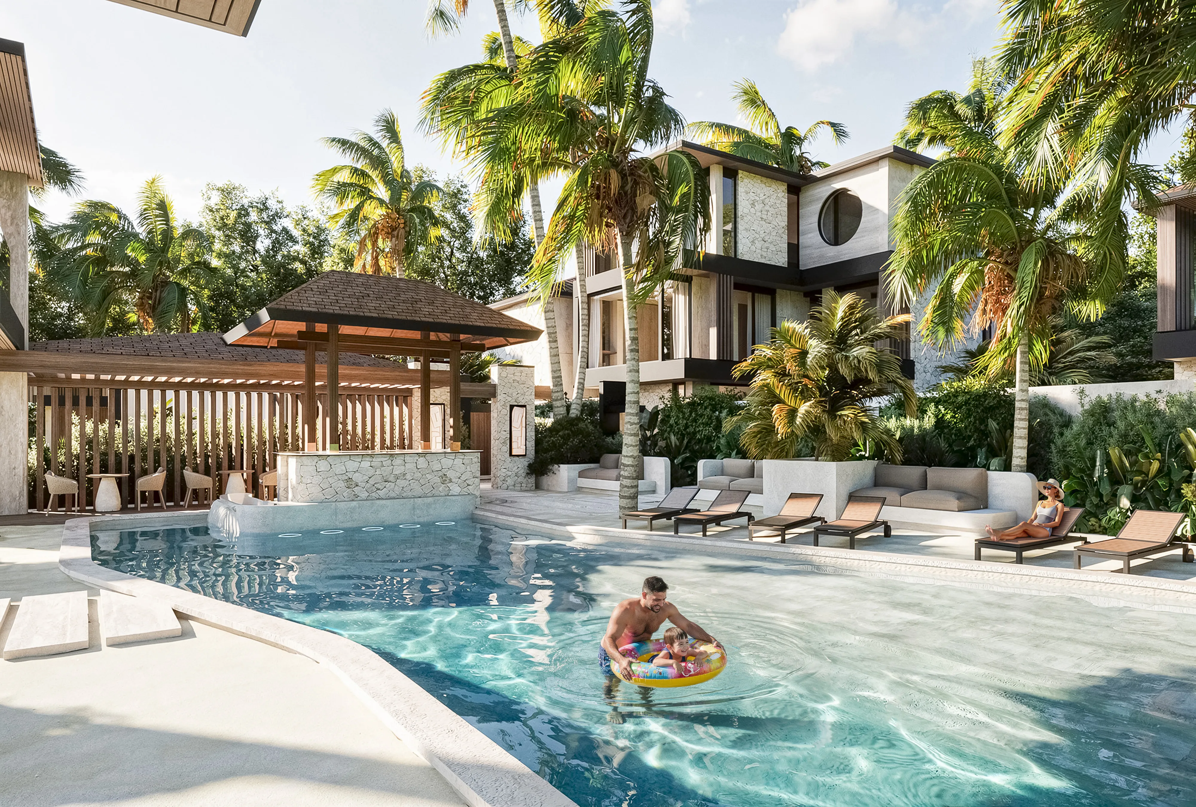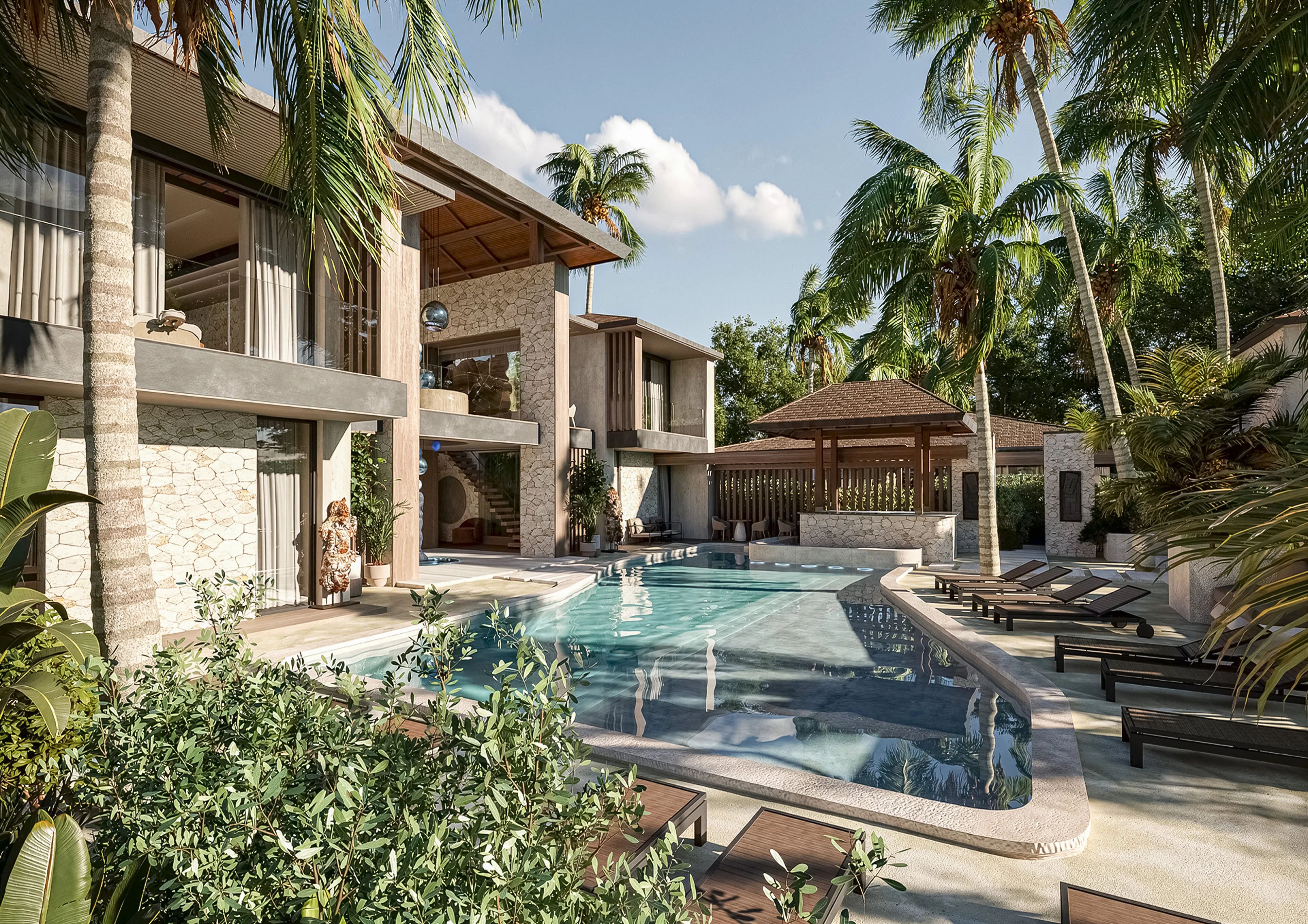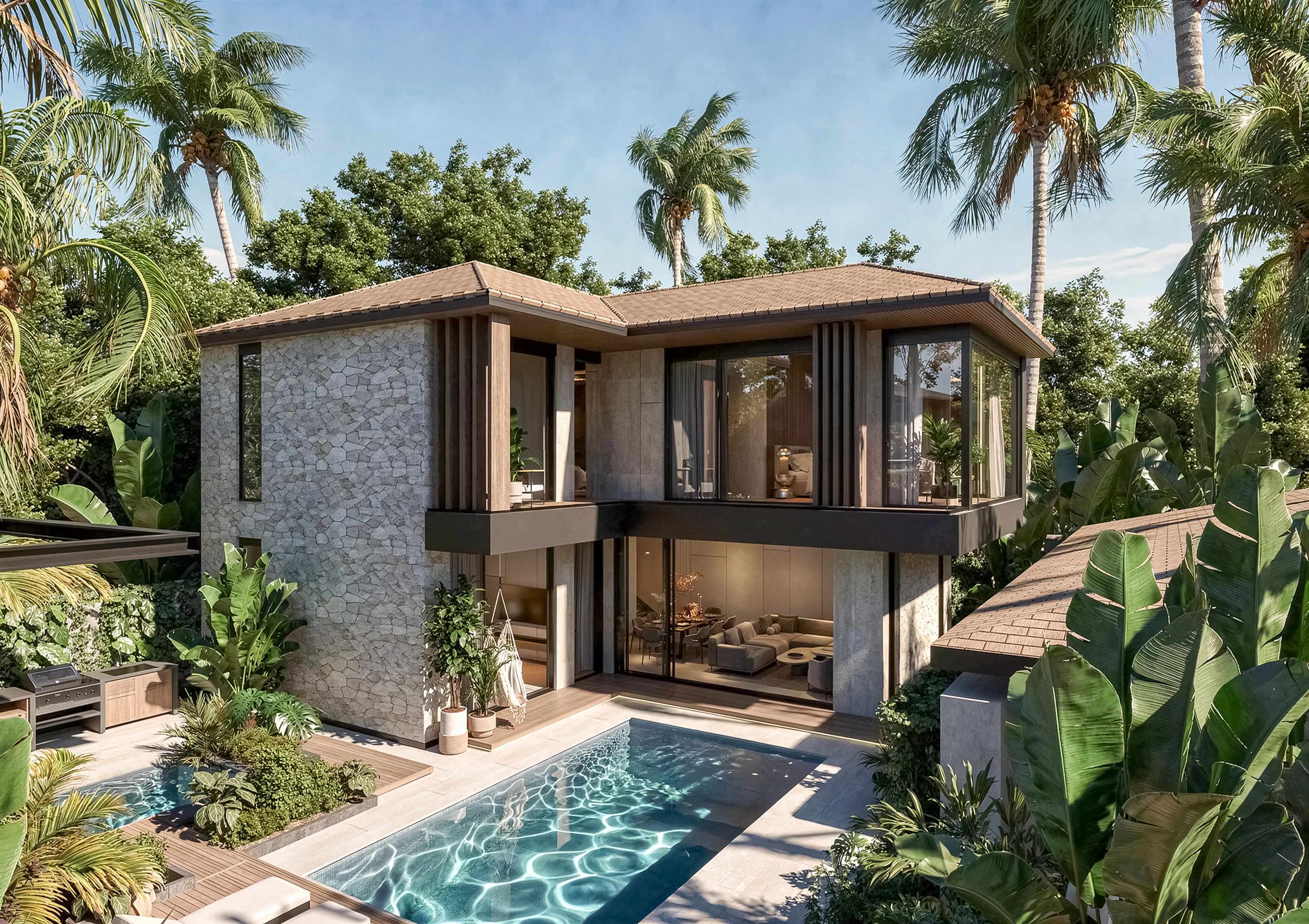Minori is a boutique complex of eleven contemporary European-style villas, developed by Eco Invest Group with over a decade of experience. Located on pink-zone land with a long-term prepaid lease structure, this exclusive project blends thoughtful architecture, a private spa zone, and professional management focused on stable returns. Designed around the core principles of safety, serenity, and a sense of home, Minori offers a rare opportunity to invest in a fully furnished, turnkey property in one of Bali’s most proven, high-demand locations. Residents enjoy a wealth of amenities designed for comfort and connection. Every villa features a private pool with a designated kids' area, spacious bedrooms, private terraces, and high-quality eco-friendly materials. The complex offers a shared swimming pool with sun loungers, a lounge area with BBQ, and a premium spa zone right inside the community. Family-centric services include a shuttle to schools and beaches, babysitting, a mobile kids' room, concierge, and an in-house delivery kitchen. A gated, curated community environment ensures privacy and exclusivity. Every villa at Minori is delivered fully equipped with premium appliances, furniture, and decor. The interior concept blends European elegance with Asian harmony, featuring soft minimalism in warm beige tones, natural wood, and stone textures. Large sliding panoramic windows open directly to gardens and pools, erasing the line between indoor comfort and greenery. Spacious living areas feature cozy seating with an artificial fireplace and TV zone. Bedrooms offer direct terrace access, personal storage, and TV areas with audio systems, creating calm, harmonious sanctuaries.